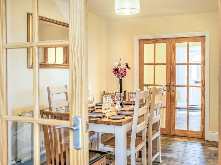 Step into the spacious kitchen/diner, well-equipped with electric oven and hob, fridge/freezer, dishwasher, microwave and TV. Enjoy a chat over a cup of tea on the comfortable table and chairs and discuss what’s on the menu for dinner. A door from the kitchen/diner leads through to the utility room with washing machine, WC and coat hooks. Double glass doors lead from the kitchen/diner into the dining room where you can enjoy a meal together and decide where to explore the following day. From the dining room glass doors lead through to the front entrance hall with further space to hang your coats, store bikes, muddy boots and wellies. Leading off the dining room to the right, you will find the lounge with duel aspect windows to enjoy the views, a comfy sofa to snuggle up on and enjoy a good film on the TV/DVD. Heading upstairs you will find a spacious landing with three bedrooms, all with TV’s and magnificent views. One double and king size bedroom, one with en-suite shower room and WC, and the other has an en-suite bathroom with shower over bath and WC. Lastly, there is one twin zip-and-link bedroom (which can be made up as a king-size on request) with en-suite bathroom with shower over bath and WC.