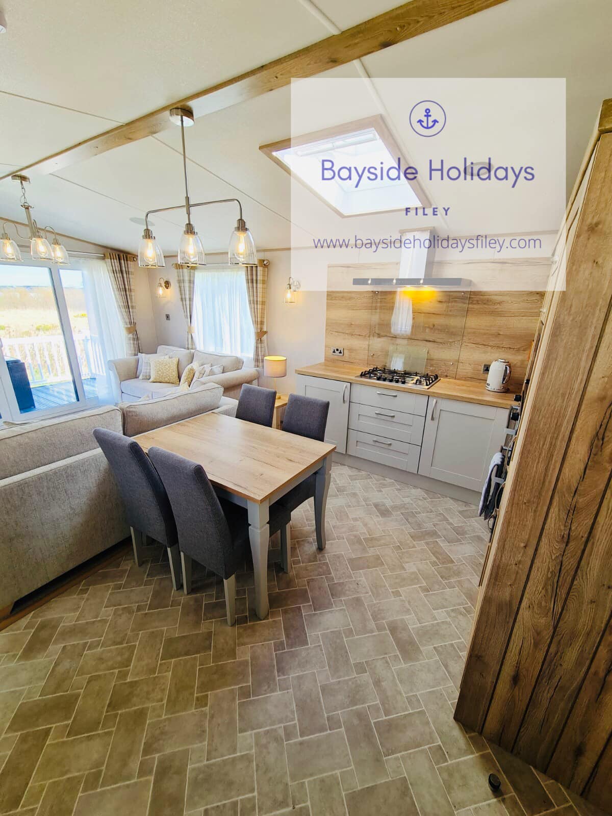 The ABI Beaumont offers a luxurious retreat, with a Shaker style-inspired kitchen, and two bathrooms with invigorating rainfall showers. The well equipped living area has freestanding sofas, built in bluetooth speaker system, and a lovely freestanding electric fire. The Kitchen is well equipped and offers a full size fridge freezer, washing machine, dishwasher, and built in cooker, grill, microwave and 5 burner hob. This Holiday Home benefits from its own personal WiFi and Parking. No pets.