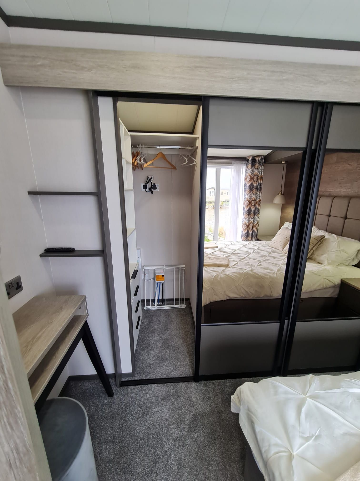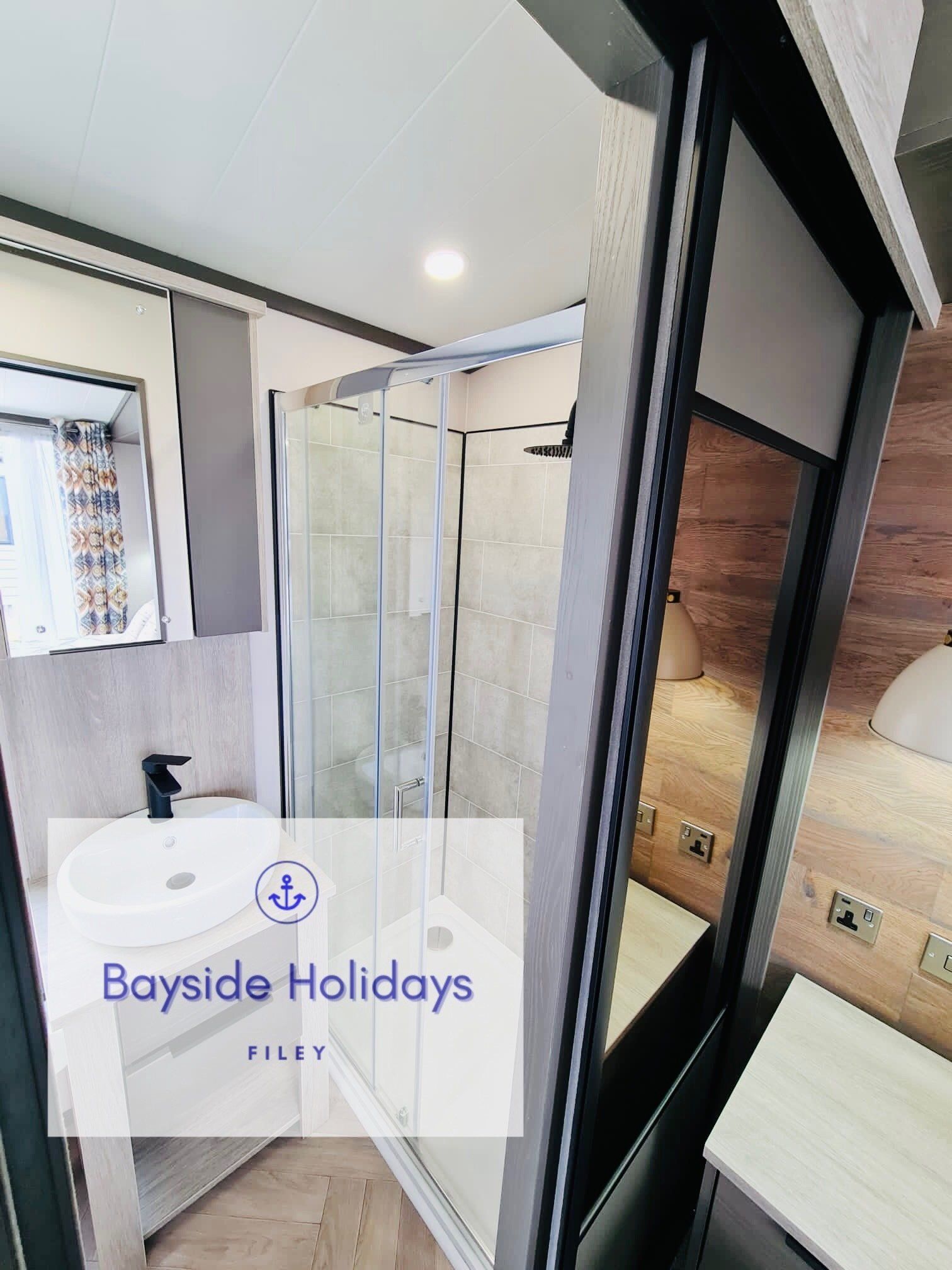 The master bedroom benefits from its own ensuite with shower, floor to ceiling windows with views over kittiwake lake, a kingsize bed, walk in wardrobe and tv. The twin room has a built in wardrobe and two full size single beds. There is also a family bathroom with another shower and toilet.