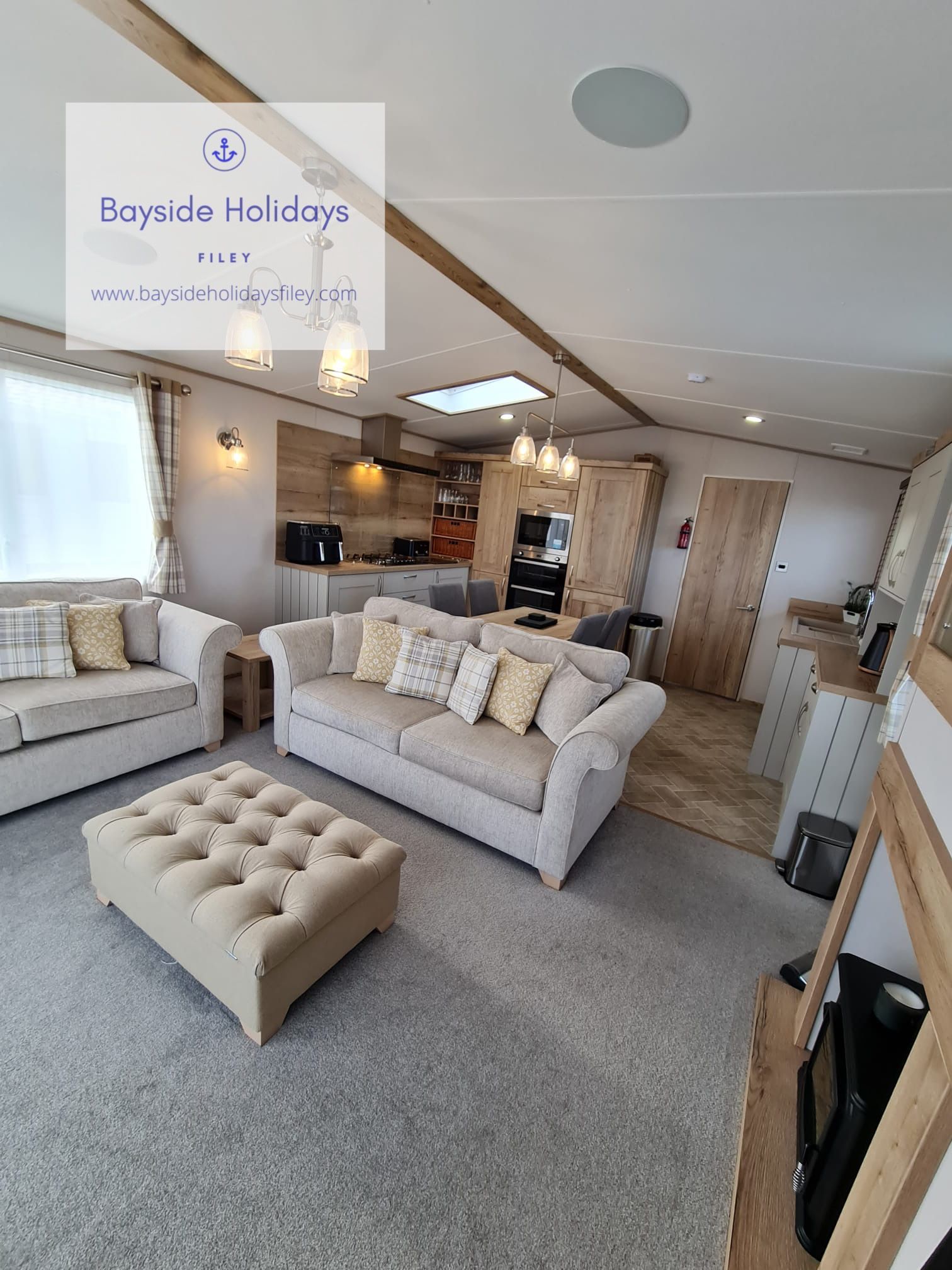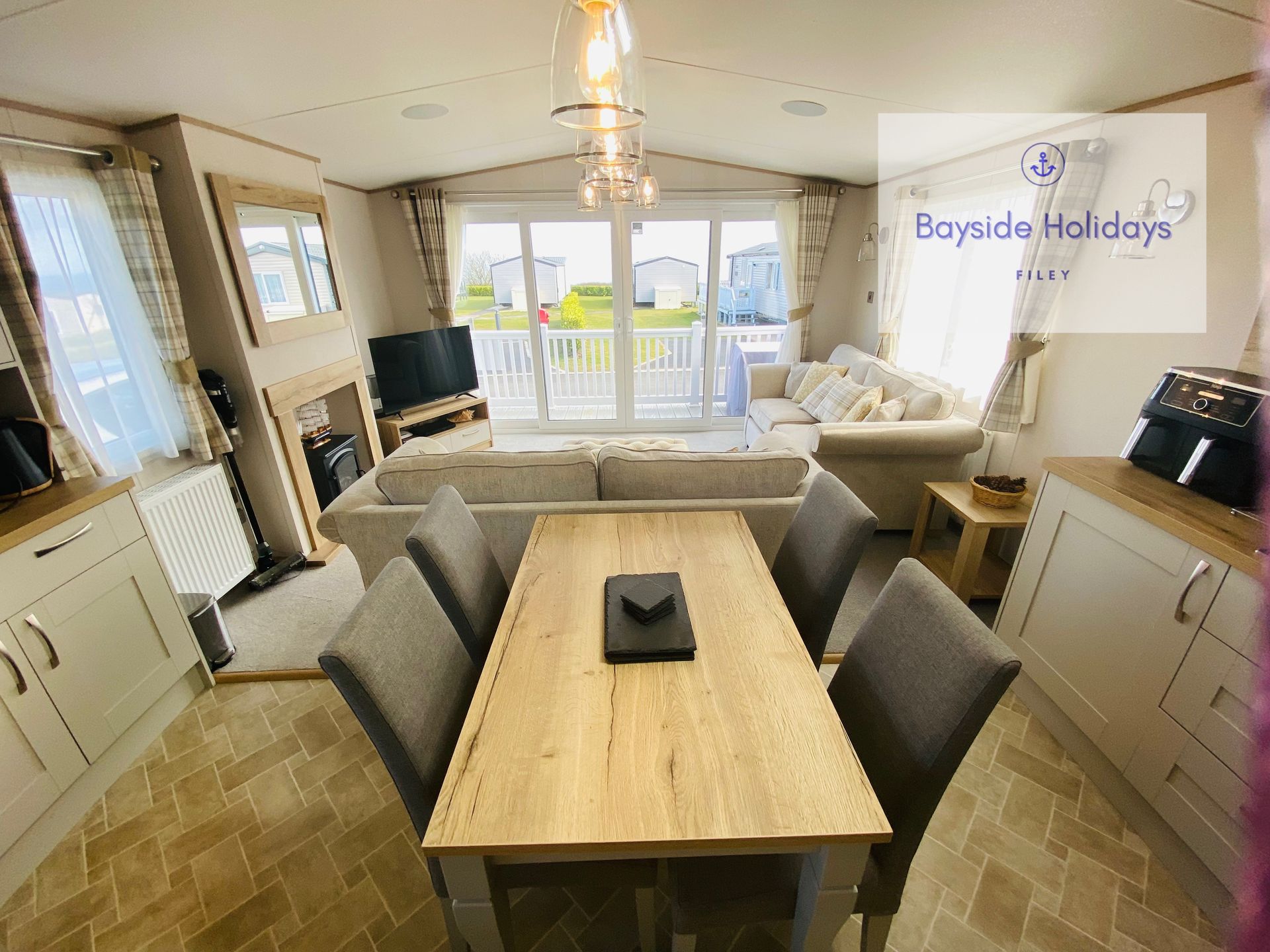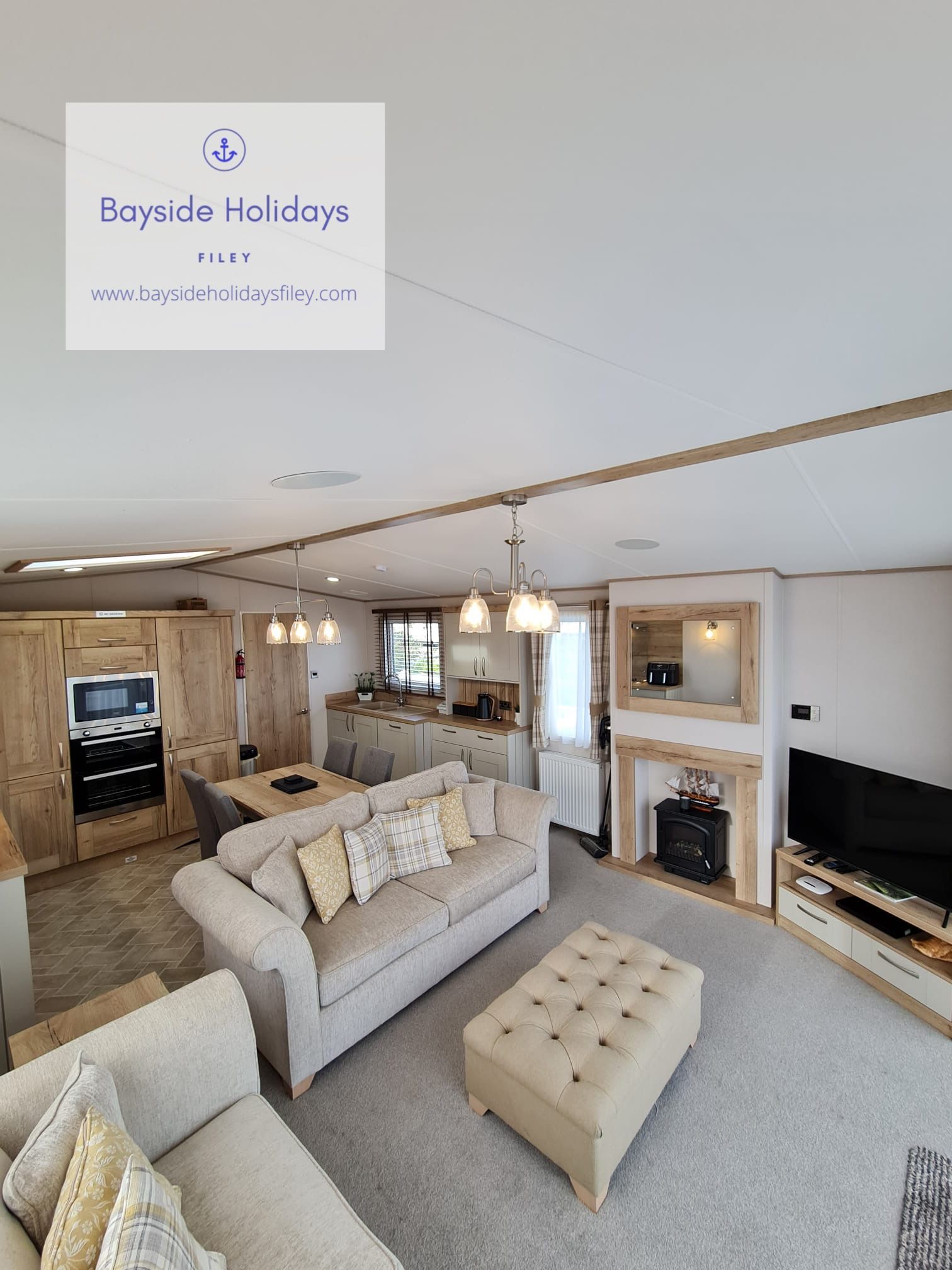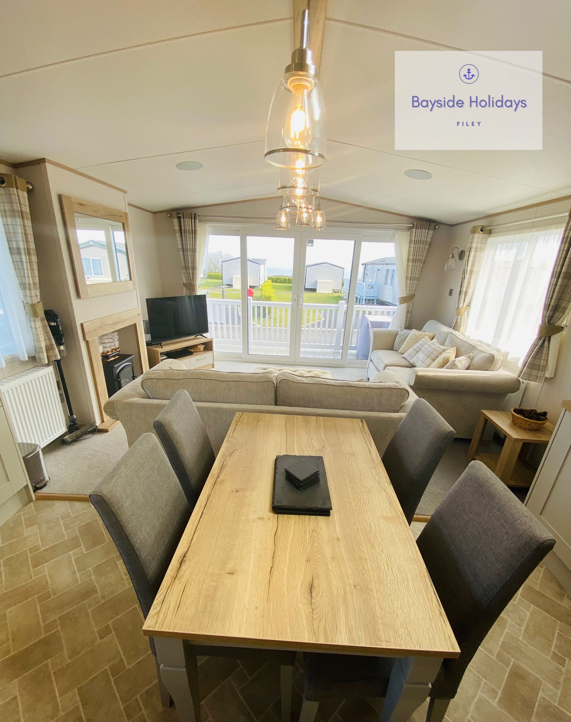 NEW FOR 2023 - An absolutely stunning 3 bedroom, 6 berth lodge with wrap around decking situated on the new seabirds development. This caravan benefits from its own private parking space and gated decking. Furnished and equipped to a high standard this platinum plus lodge offers luxurious and comfortable accommodation.