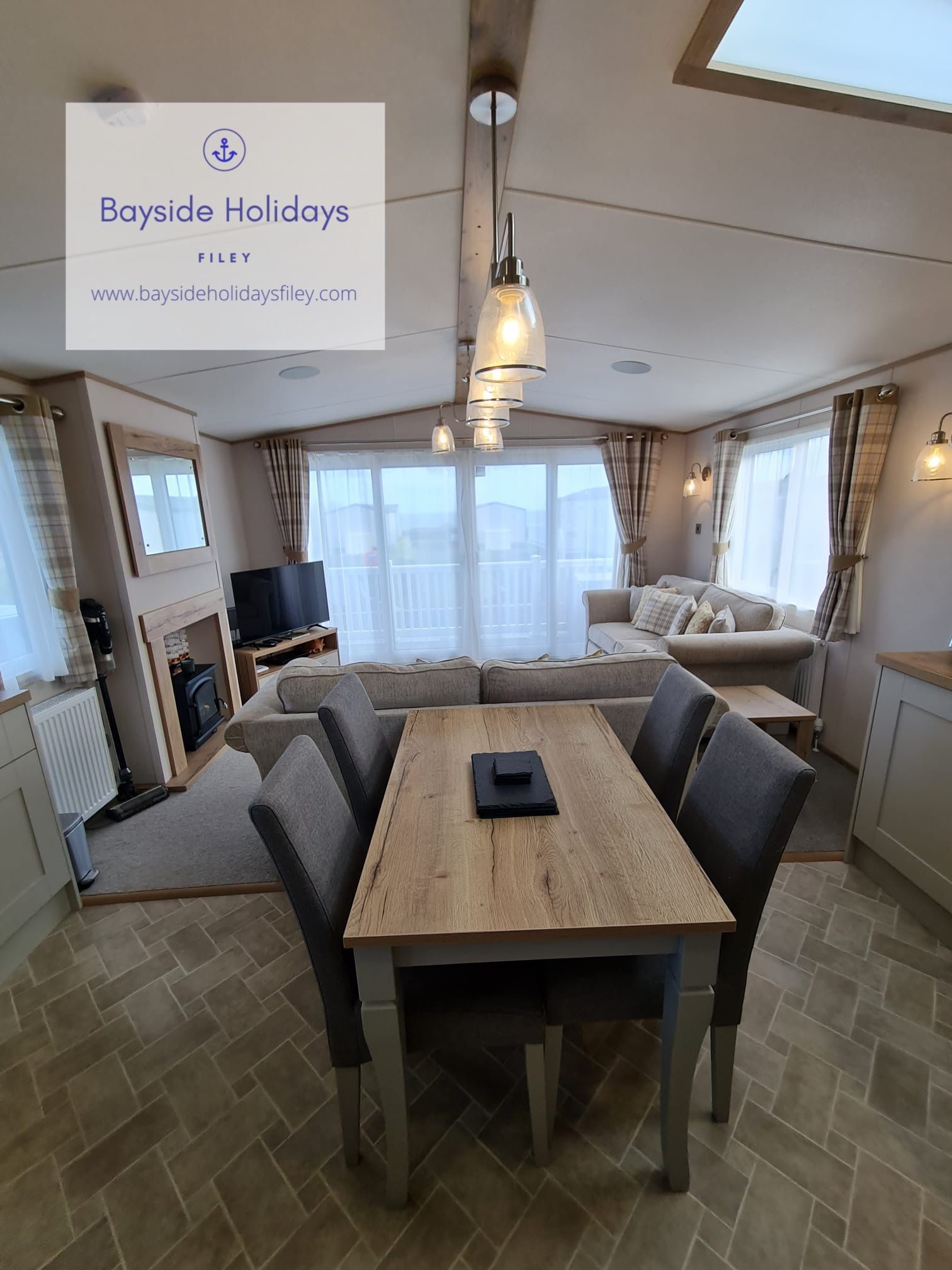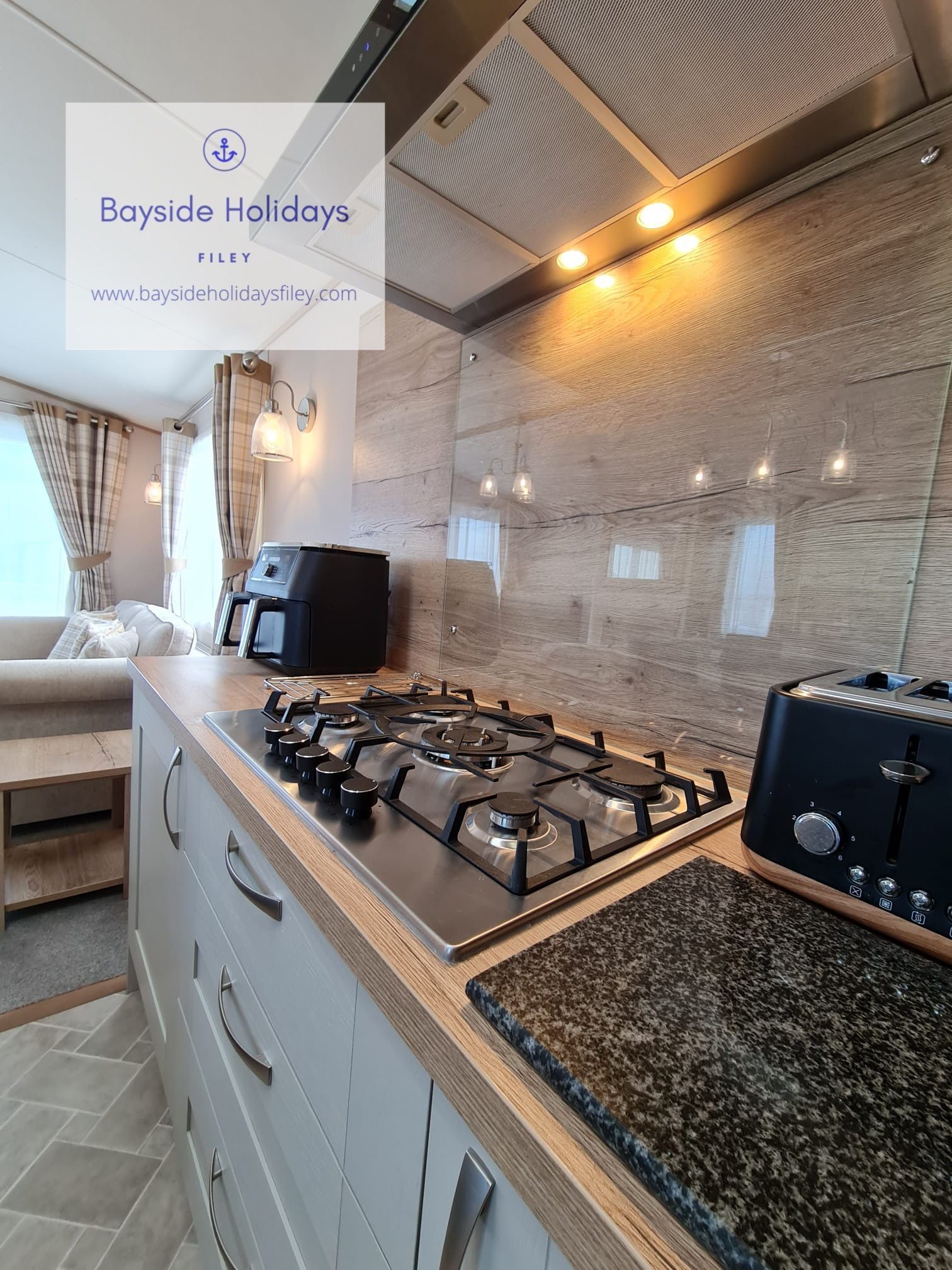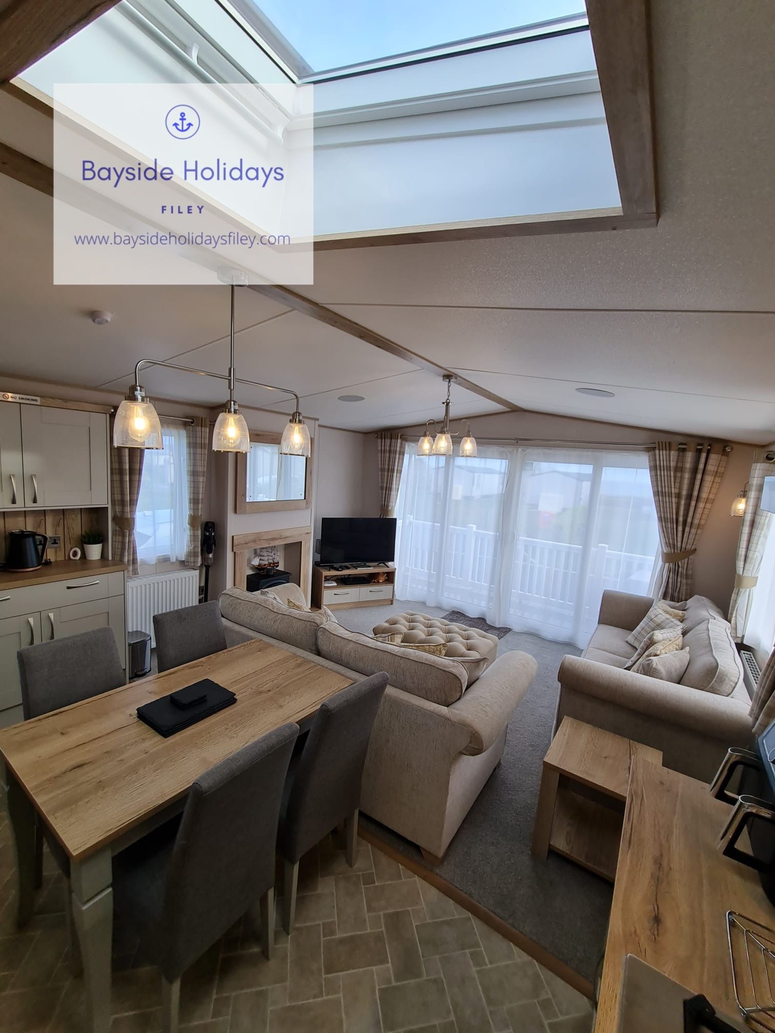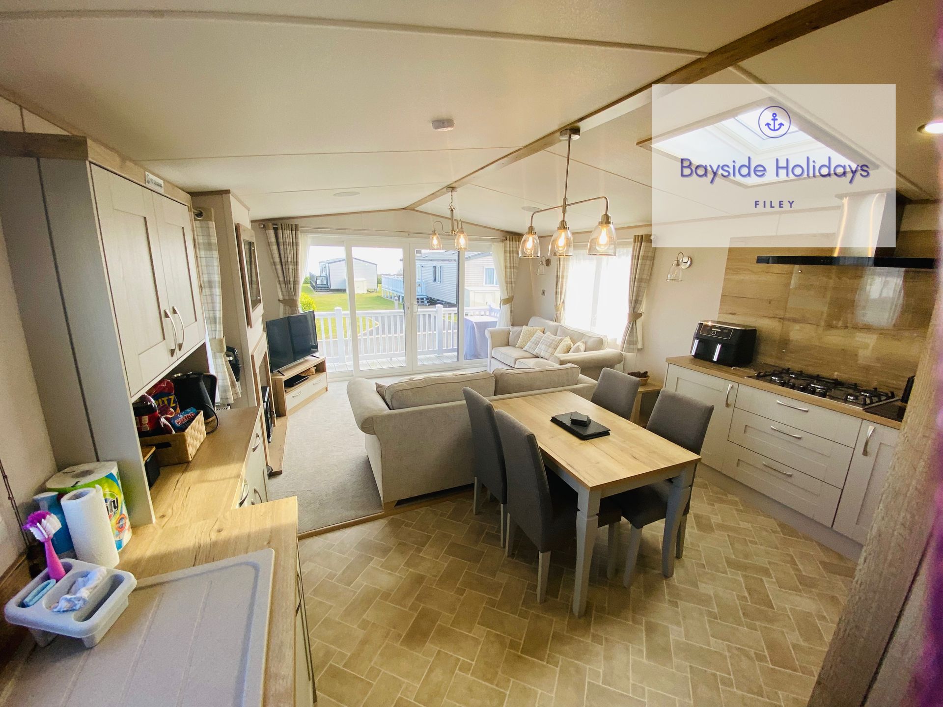 NEW FOR 2023 - An absolutely stunning 3 bedroom, 6 berth lodge with wrap around decking situated on the new seabirds development. This caravan benefits from its own private parking space and gated decking. Furnished and equipped to a high standard this platinum plus lodge offers luxurious and comfortable accommodation.